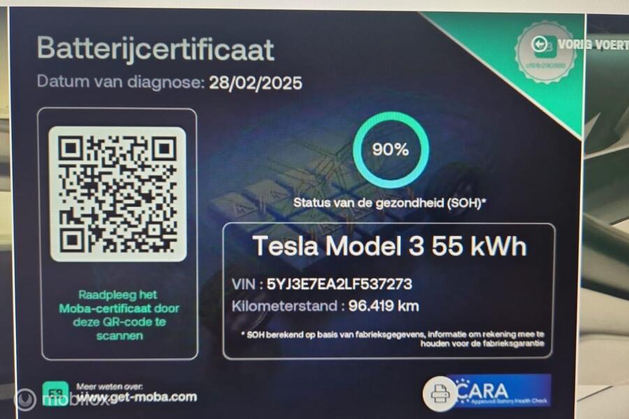 De fabrieksgarantie op aandrijfmotor en HV-batterij zijn van toepassing (8-jaar/160.000Km Zie tesla.com voor de voorwaarden).
