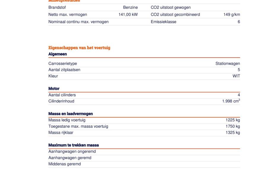 De personenauto heeft een topsnelheid van 235 km per uur en bereikt vanuit stilstand de 100 km/u in 6,9 seconden. Het verbruik van deze personenauto is gemiddeld 6,9 liter per 100 km en hij weegt 1225 kg. De APK is geldig tot 10-07-2027 en de wegenbelasting bedraagt gemiddeld € 173,67 per kwartaal.